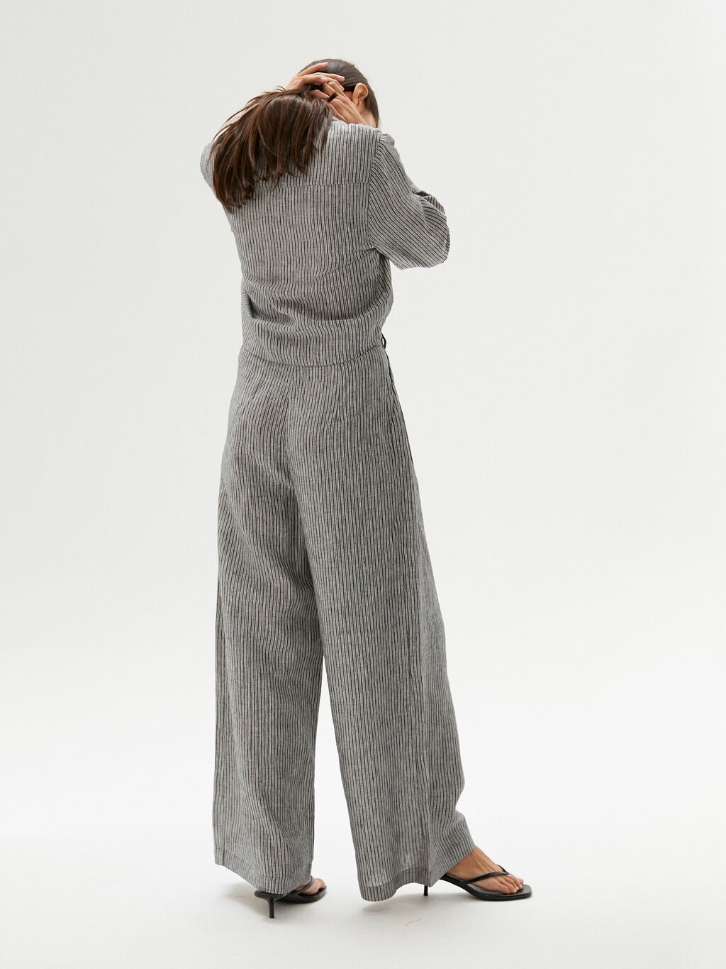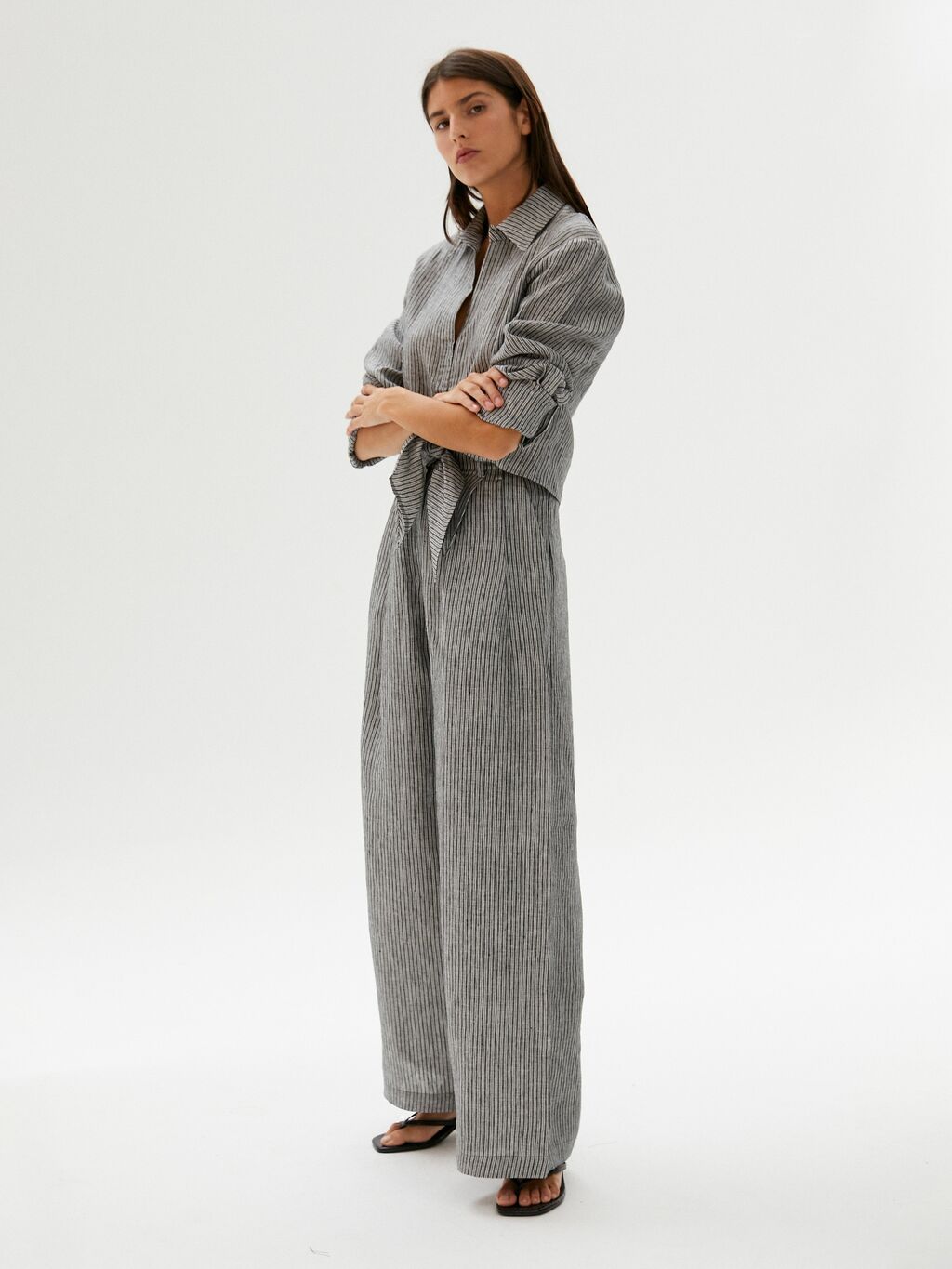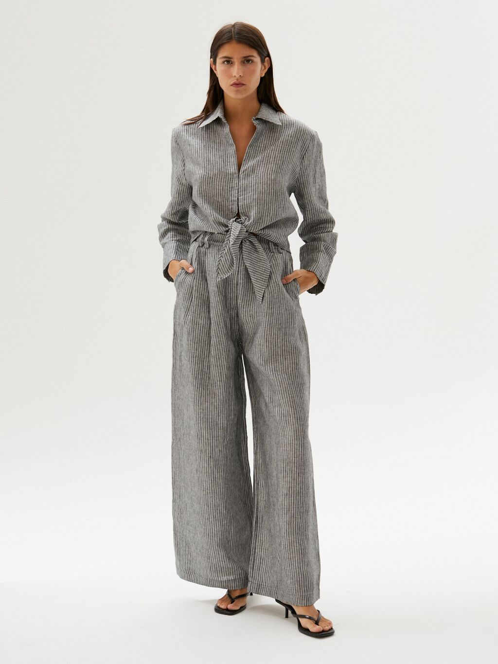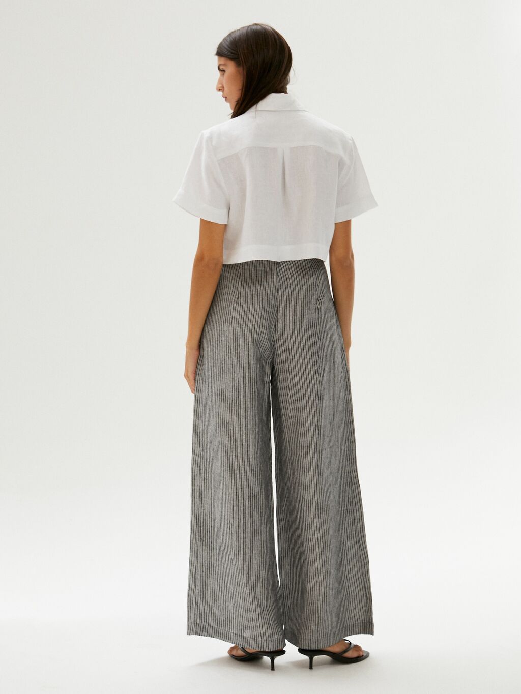 Los pantalones Alma están cuidadosamente diseñados para brindar comodidad y elegancia. Confeccionados en lino orgánico, ofrecen gran transpirabilidad. Su cintura alta favorecedora y los pliegues dobles invertidos que caen en una pierna ancha y voluminosa permiten una gran libertad de movimiento.